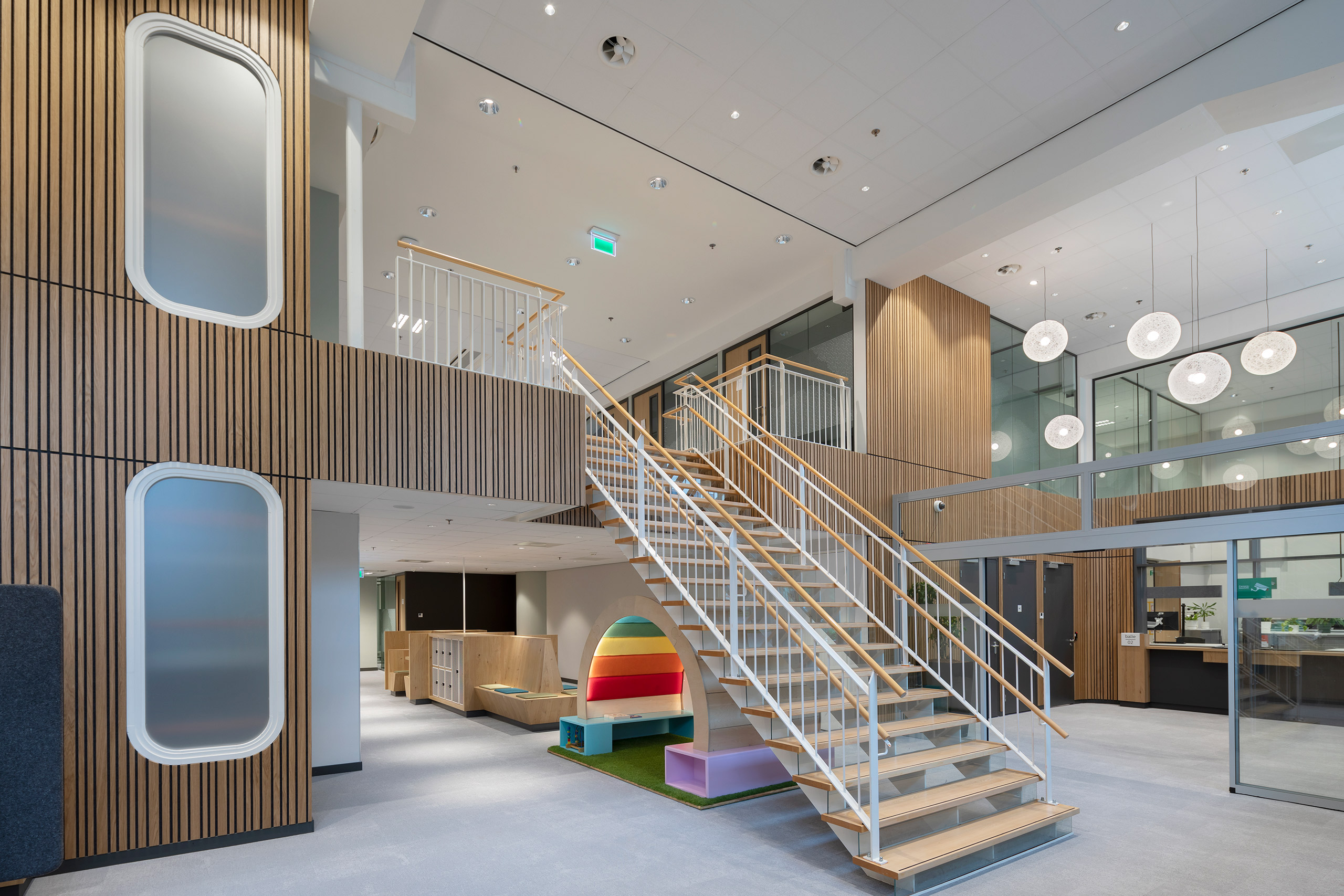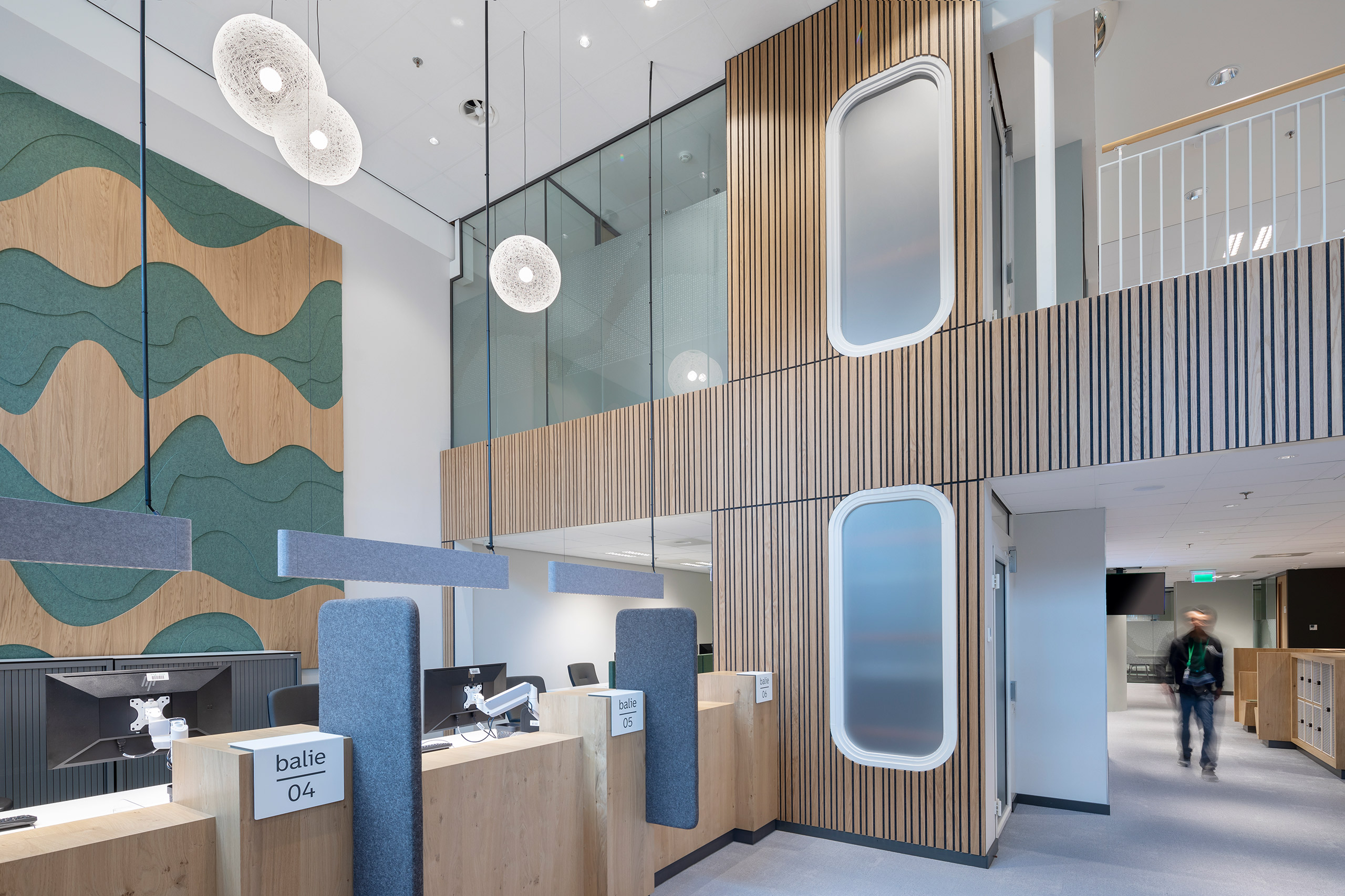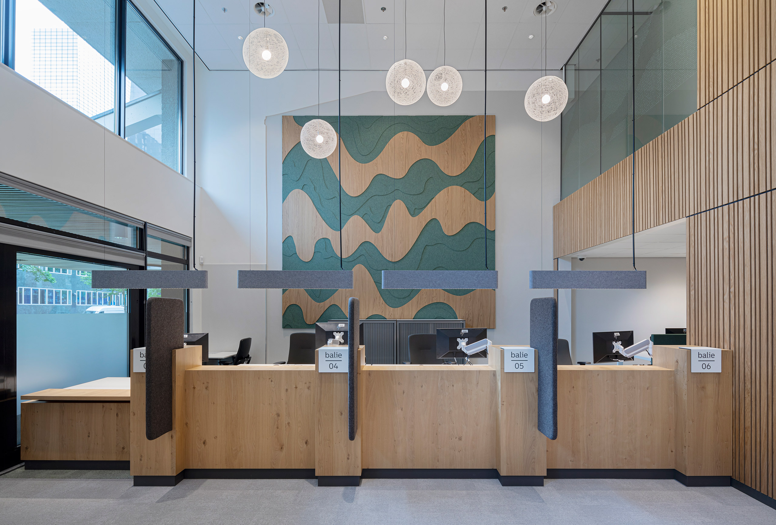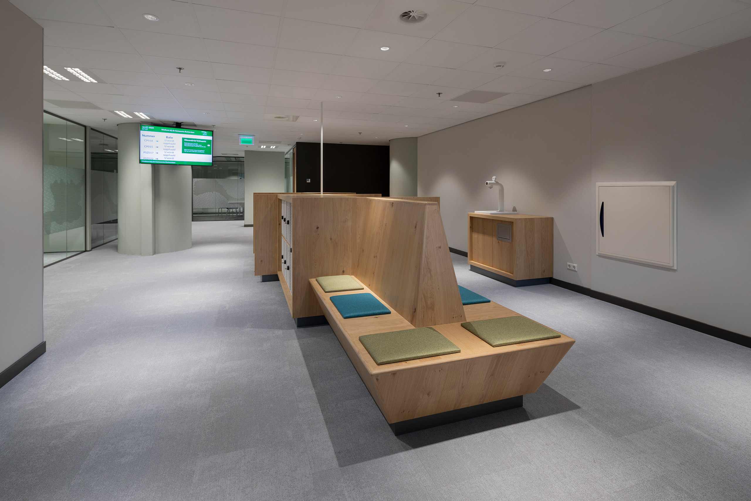 De nieuwe publiekslocatie van de gemeente Rotterdam heeft in het monumentale Central Post een mooie, goed bereikbare plek gekregen. De balies en spreekwerkplekken zijn ontworpen volgens de richtlijnen van de gemeente, met een zo duurzaam mogelijke invulling. De ruimte voelt ondanks de vide akoestisch erg prettig aan, met veel houten details. Stevig genoeg voor intensief gebruik, warm en toegankelijk in uitstraling.