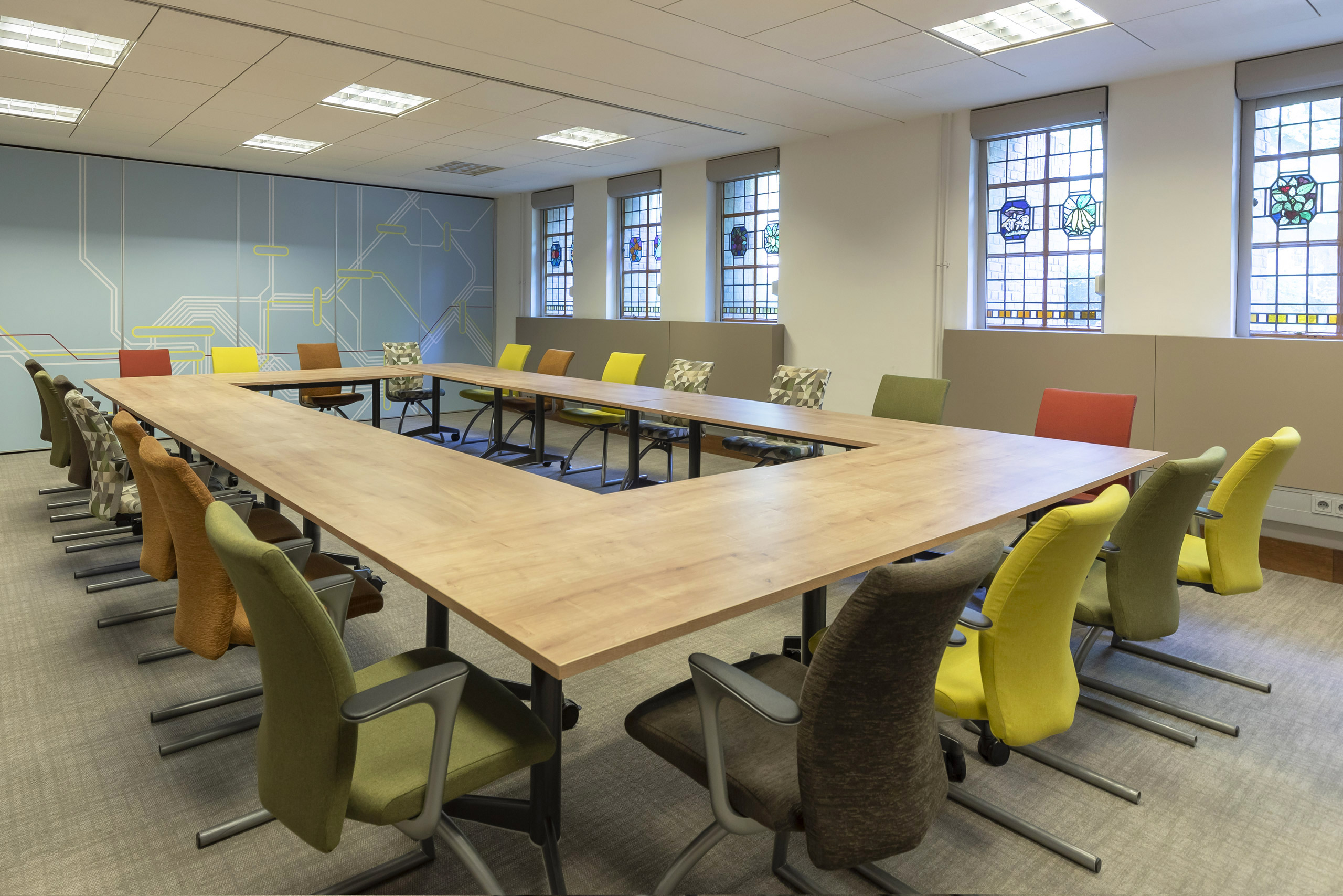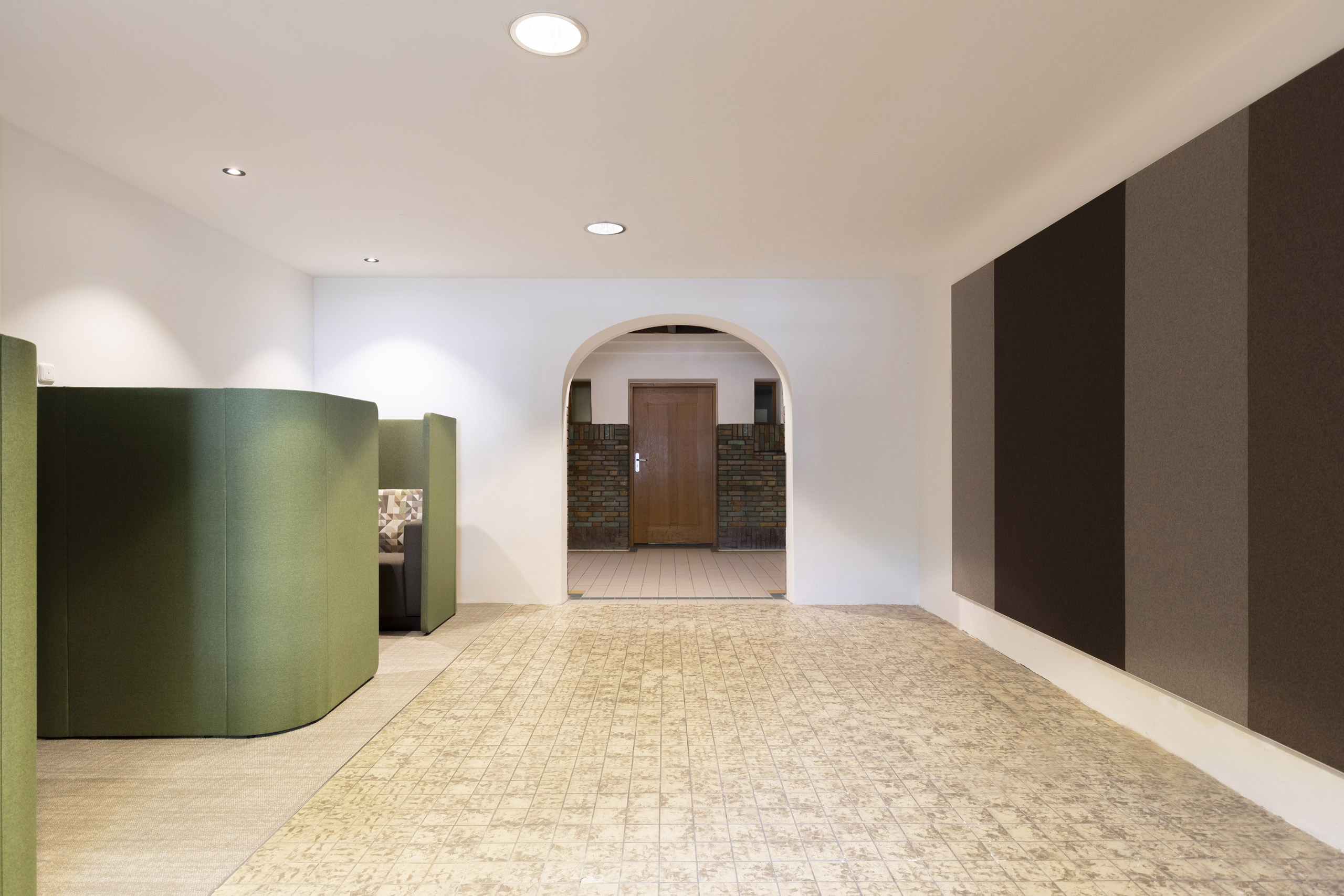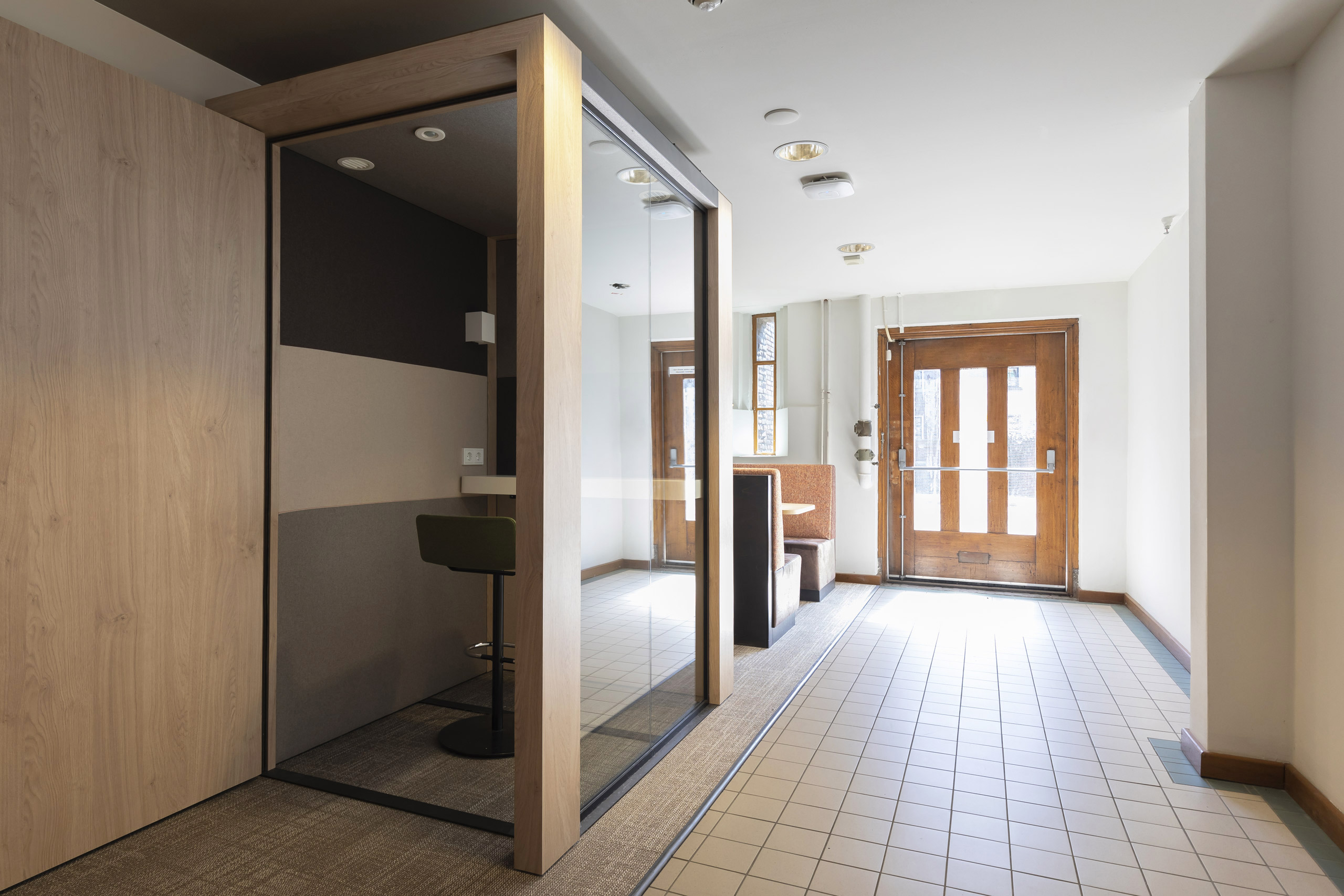 De Inktpot is een icoon in het centrum van Utrecht, waar in de plint de hele verdieping als vergadercentrum is ingezet. De strakke uniforme indeling van kamers voor 10 personen betekende vaak dat een overleg van 2 personen ook in zo’n kamer moest. De F vleugel is daarom nieuw ingedeeld, waardoor veel meer mogelijkheden om informeel te ontmoeten zijn gecreëerd. Kleinere kamers met een vrij toegankelijke voorruimte hebben zowel de bezettingsgraad als de sfeer flink verhoogd.