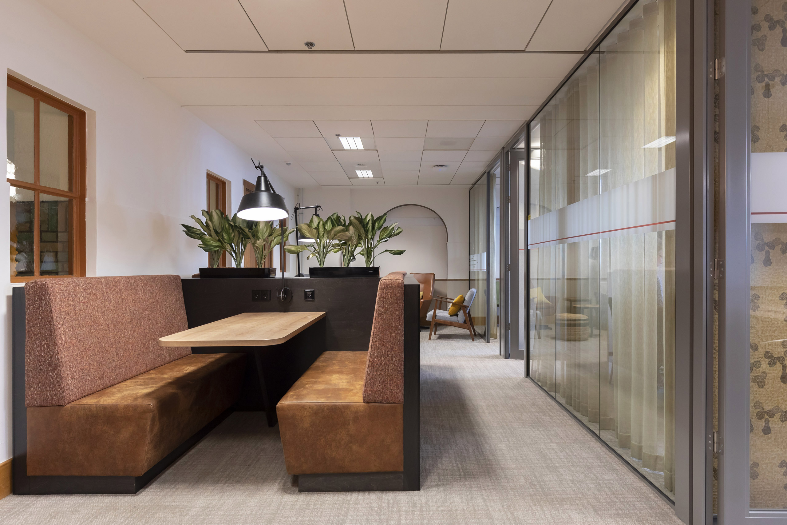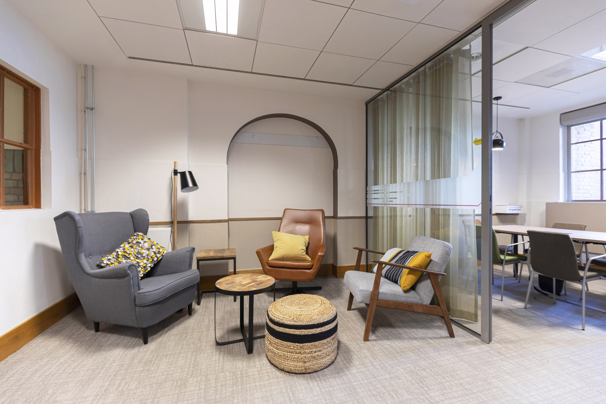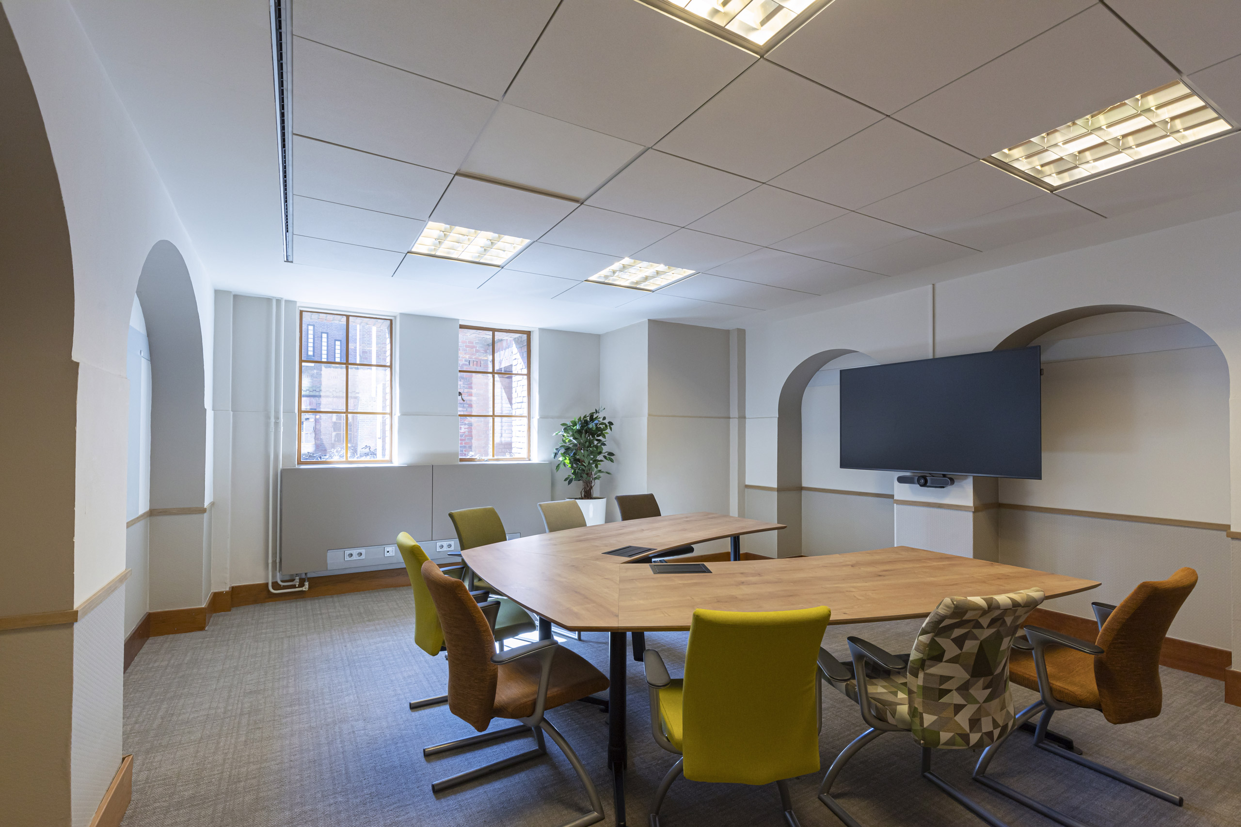 De Inktpot is een icoon in het centrum van Utrecht, waar in de plint de hele verdieping als vergadercentrum is ingezet. De strakke uniforme indeling van kamers voor 10 personen betekende vaak dat een overleg van 2 personen ook in zo’n kamer moest. De F vleugel is daarom nieuw ingedeeld, waardoor veel meer mogelijkheden om informeel te ontmoeten zijn gecreëerd. Kleinere kamers met een vrij toegankelijke voorruimte hebben zowel de bezettingsgraad als de sfeer flink verhoogd.