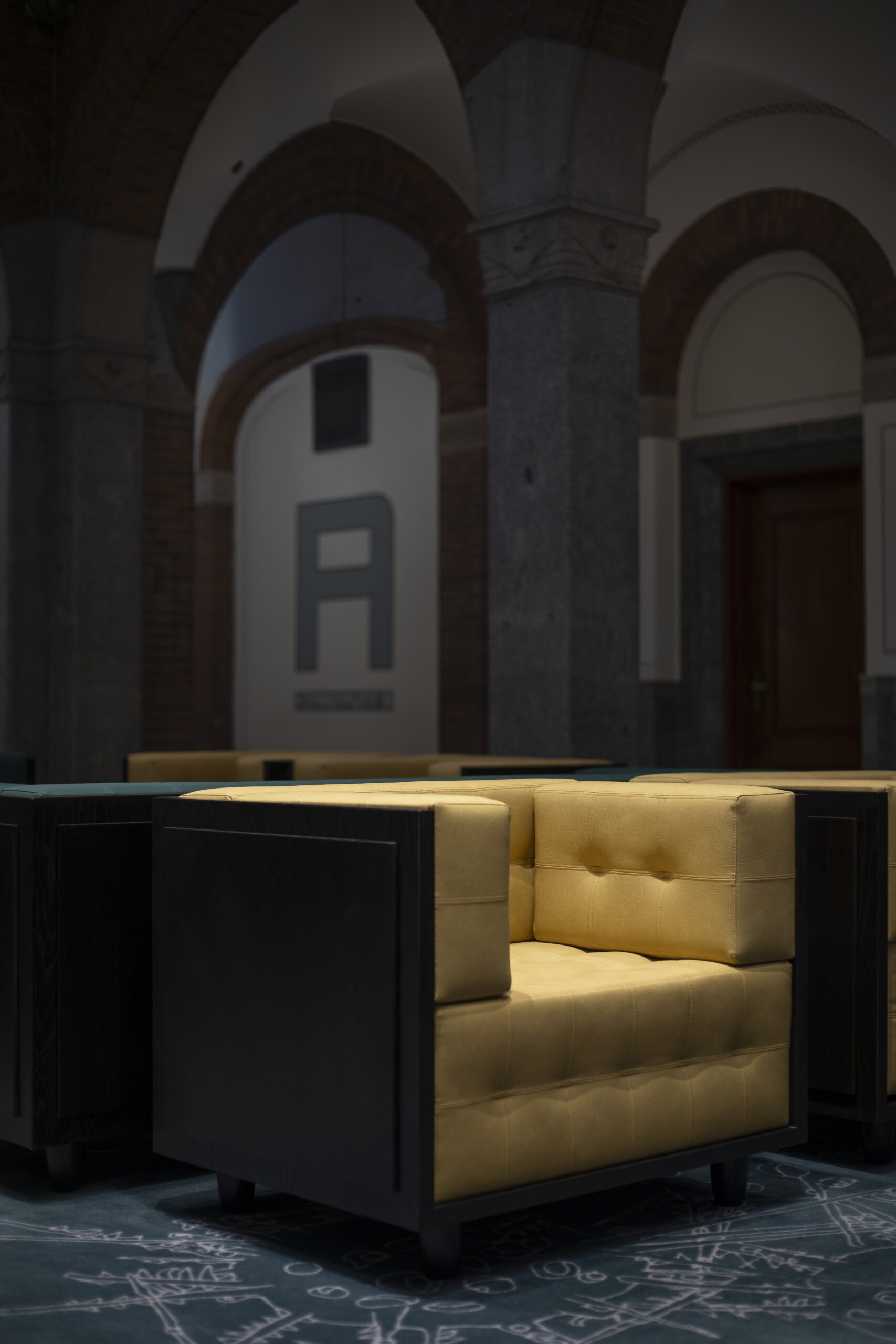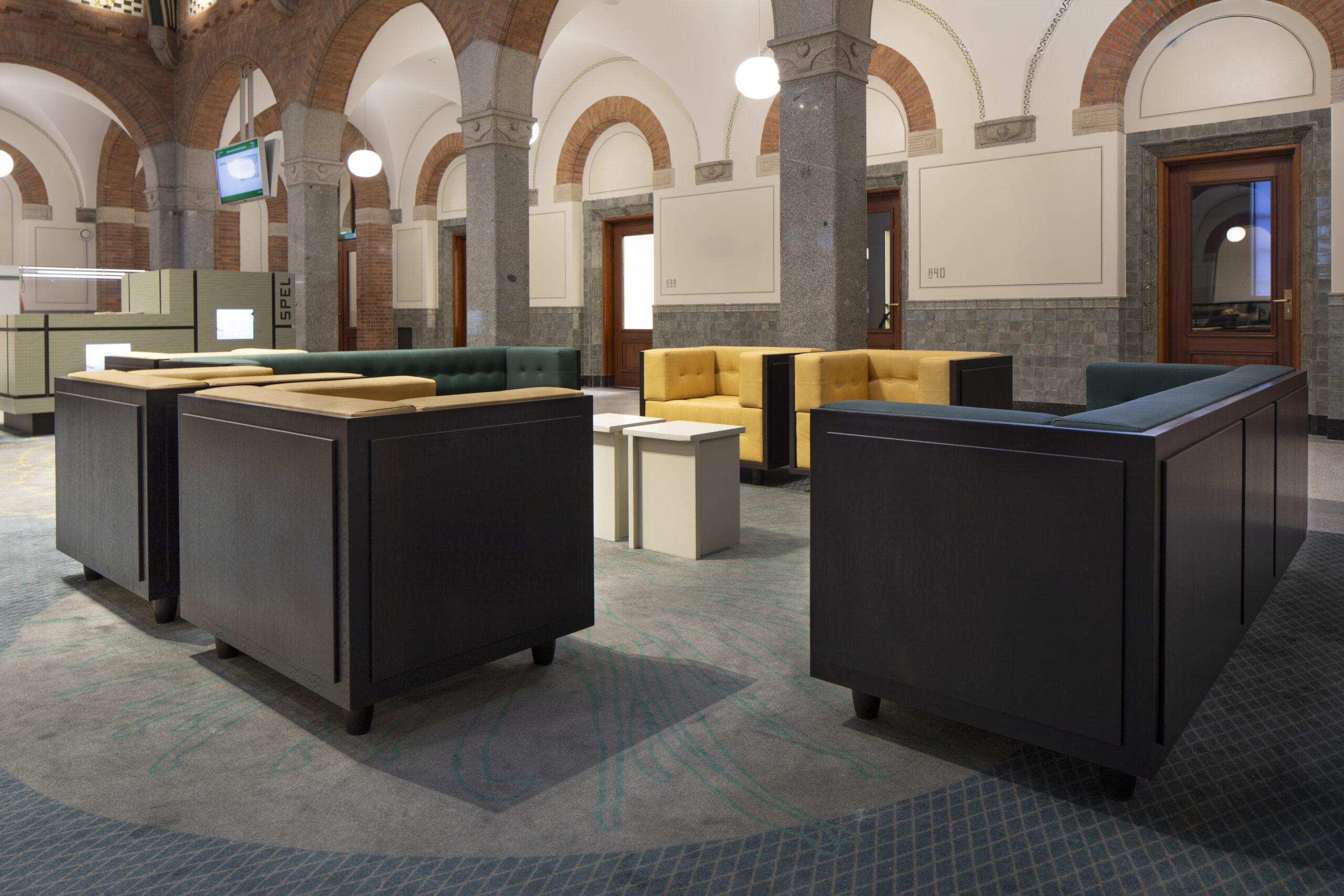 De bestaande bankjes waren niet meer schoon te krijgen, maar her–bekleden is nog niet zo makkelijk, met gecapitonneerde delen. Workbrands heeft de stoffering begeleid: strak uitgevoerde details, gecombineerd met onze keuze voor een sterke en goed te reinigen stof maken het eindresultaat weer iets om trots op te zijn.