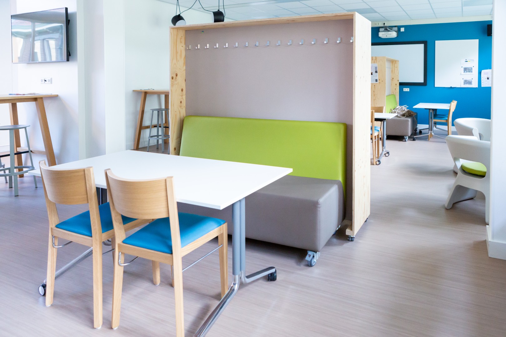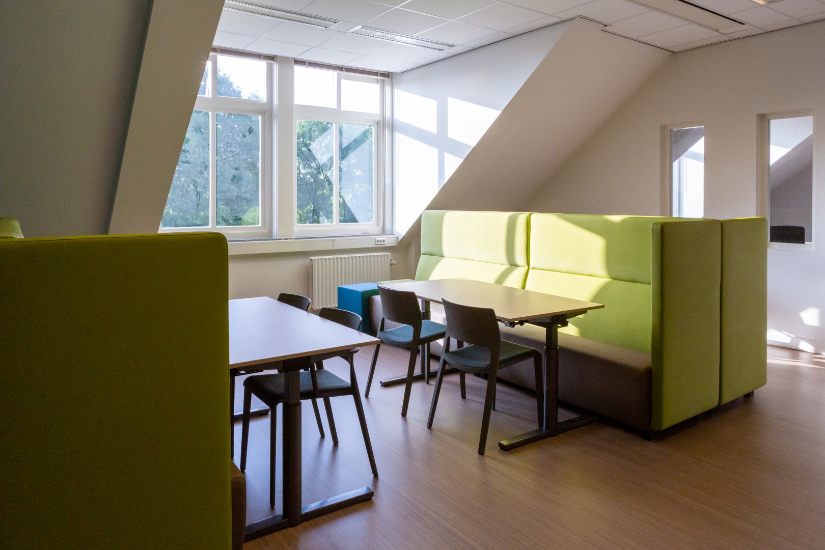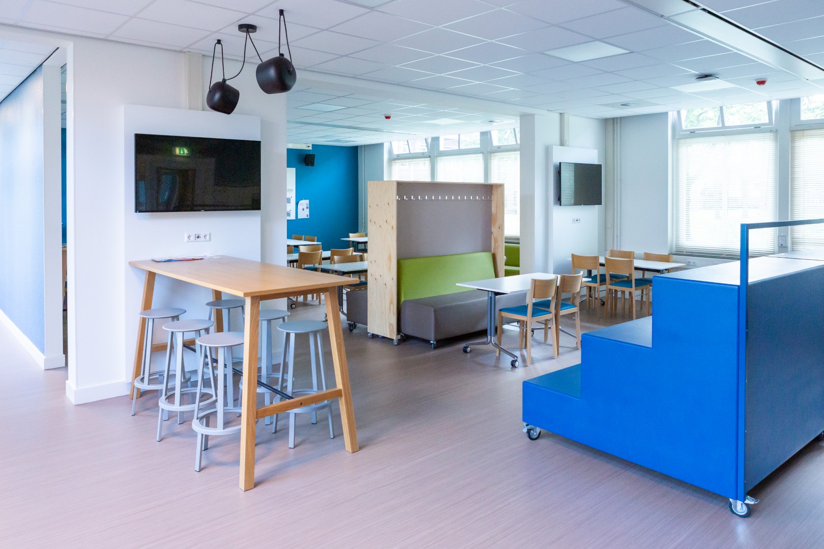 Het Descartes gebouw is een rijksmonument op de International Campus Utrecht. De opleiding PPE heeft behoefte aan veel interactieve studie- en ontmoetingsruimtes, wat je terugziet in het interieur. Het kleurrijke interieur is bestand tegen intensief studenten gebruik en aan te passen aan verschillende gebruikers-scenario’s.