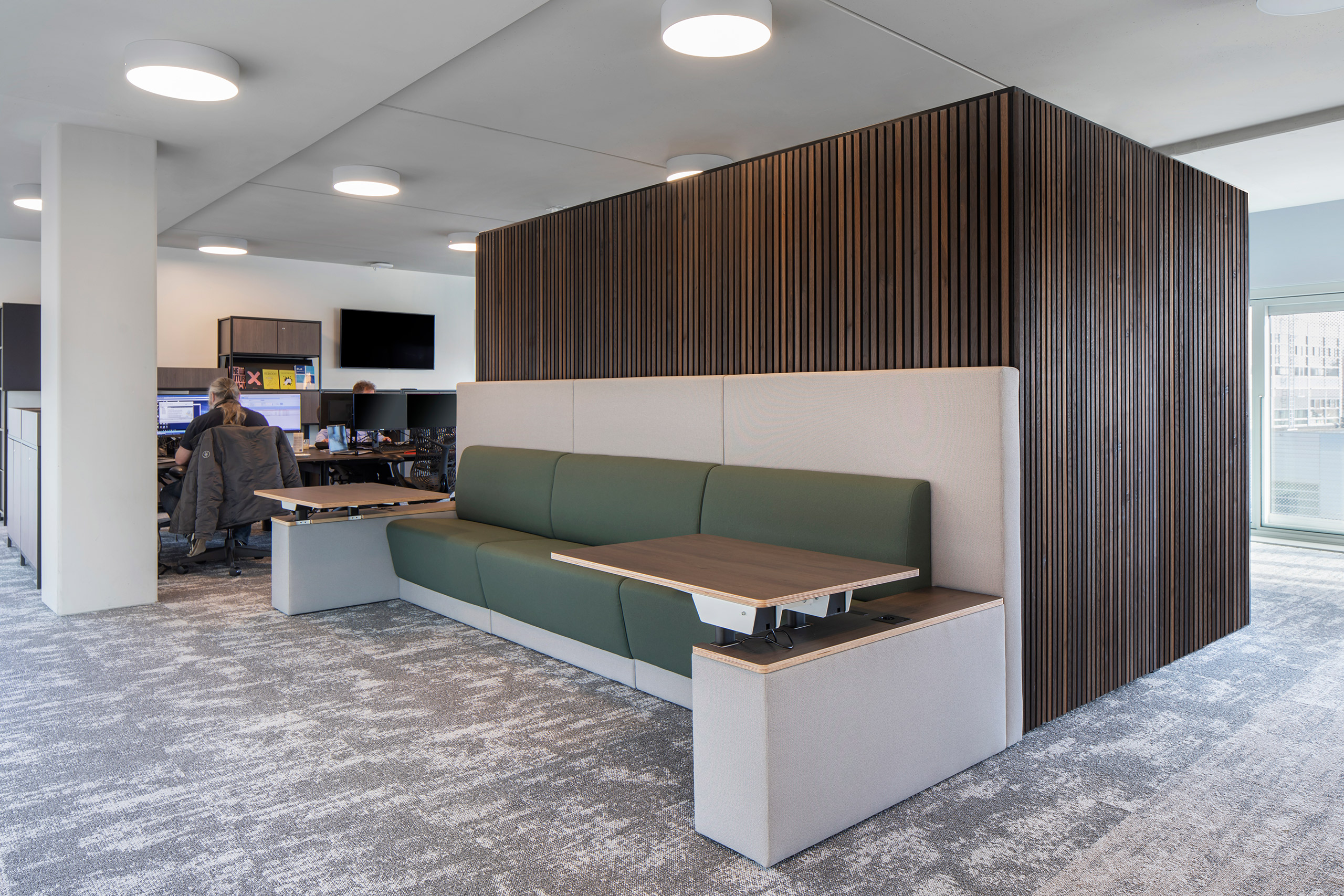 Bouwkundig mocht er niets veranderd worden aan het pand, dus wat doe je dan als de behoeften van je bedrijf veranderen? Bij Valid was er veel meer behoefte aan overlegmogelijkheden, wat onder andere opgelost is door losse vergaderboxen te plaatsen. Tegelijkertijd is er veel meer eenheid tussen de verdiepingen gecreëerd, waardoor de medewerkers zich thuis voelen op welke verdieping ze dan ook zijn.